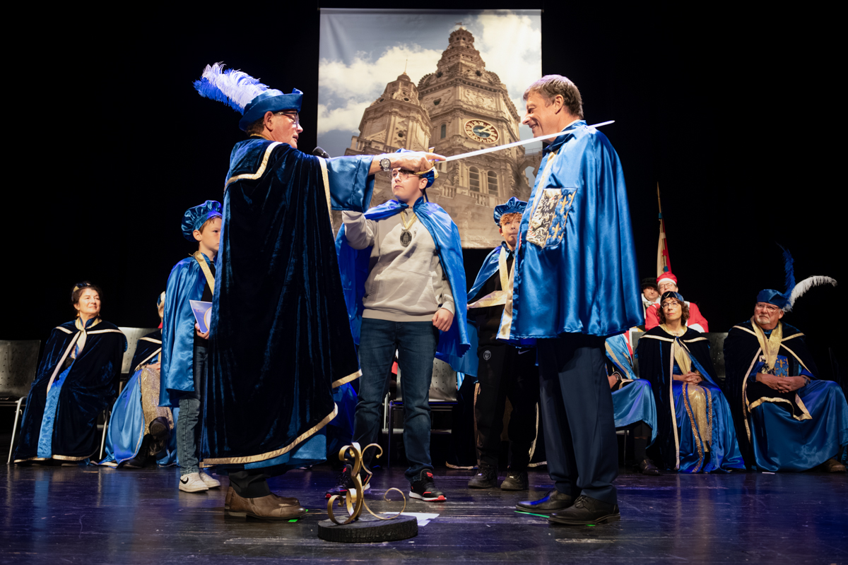 La cérémonie, haute en couleurs, se déroule selon un protocole traditionnel et convivial avec la participation de la Confrérie des Chevaliers de Tournai et de la Guilde des Arbalétriers amandinois.